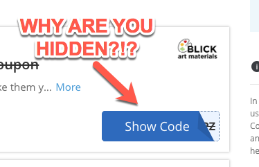 Caso você esteja se perguntando por que o código promocional está sempre oculto e exige que você clique para visualizá-lo, é porque eles podem abrir uma nova aba do navegador (normalmente em segundo plano) que abre o site do varejista (como wallgreens.com) e adiciona o cookie de marketing de afiliados ao seu navegador, recompensando-os por qualquer compra que você fizer.